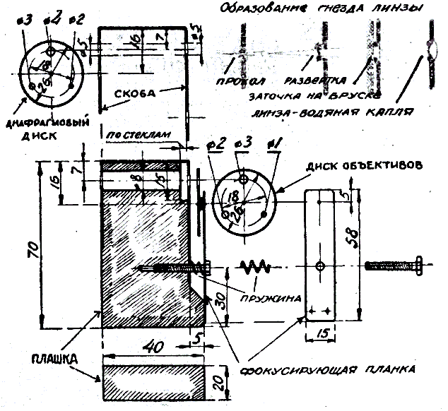 микроскопа. Разметив диск по чертежу, проколите в нем отверстия и разверните