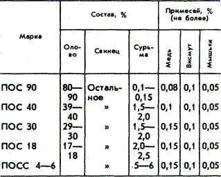 4 указаны составы наиболее известных оловянно-свиицовых припоев.